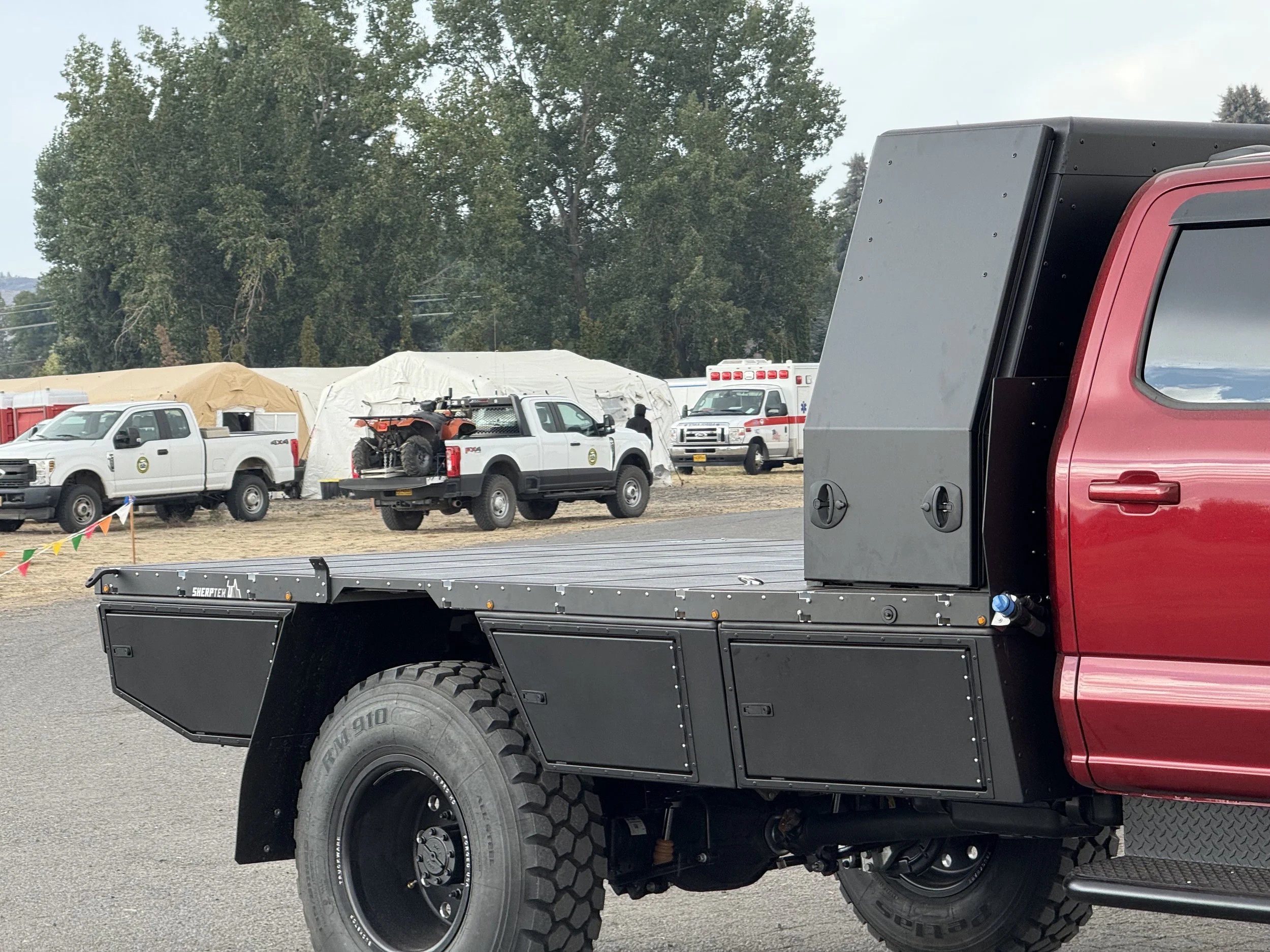 Photos of Kingstar Campers on a SherpTek aluminum, modular flatbed system.