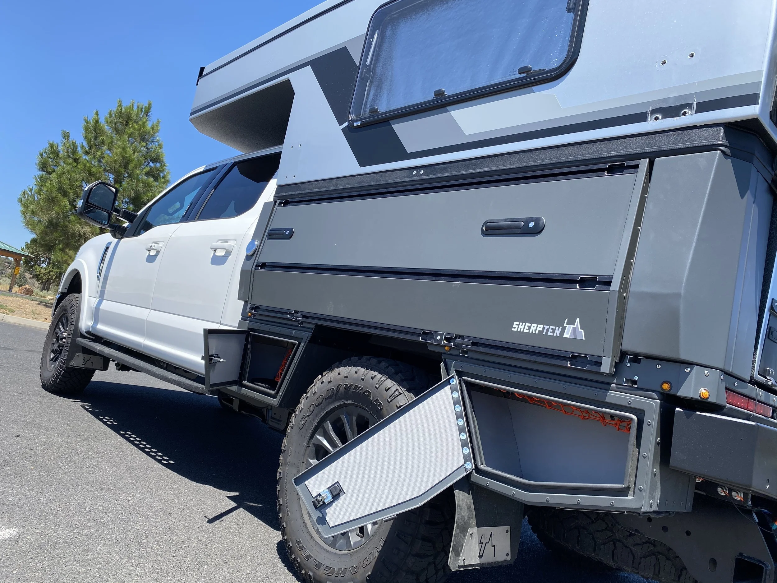 Toyota Tundra short bed with SherpTek system and Kimbo camper.